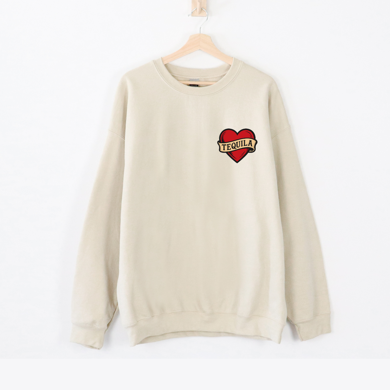 A crewneck made for the people who wear their love for tequila proudly and effortlessly. The bold heart graphic brings a warm, vintage edge that fits right in at tastings, backyard gatherings, or slow Sundays with your favorite people. Soft, relaxed, and easy to layer — it’s the kind of staple you’ll reach for every time life calls for comfort with a little personality.
